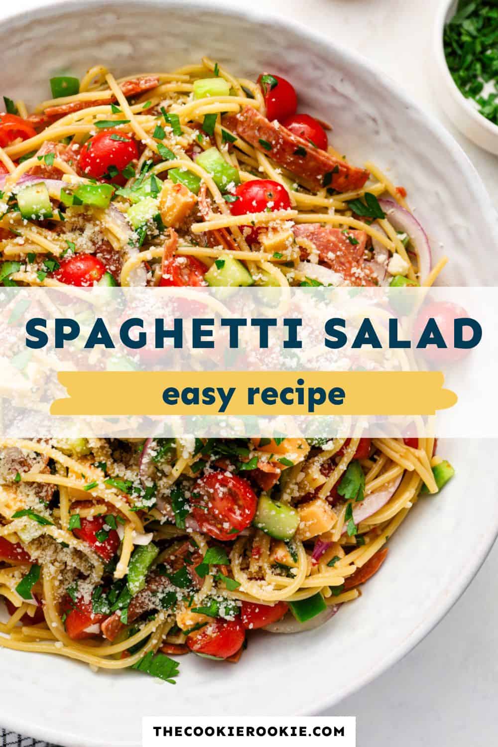 - Serve the spaghetti salad topped with Parmesan and extra chopped parsley if desired.Parmesan